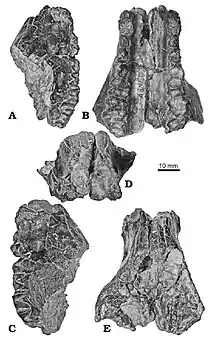 - ↑ Pickford, M. (2004). "Miocene Sanitheriidae (Suiformes, Mammalia) from Namibia and Kenya: systematic and phylogenetic implications". Annales de Paléontologie. 90 (4): 223-278. doi:10.1016/j.annpal.2004.06.002.