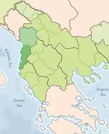 ![]() Sanjak of Durrës highlighted in darker green within the Scutari vilayet in late 19th century. | |
