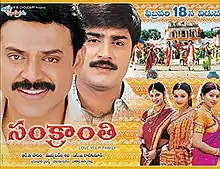 Sankranti is a 2005 Indian Telugu-language drama film produced by R. B. Choudary under Super Good Films and directed by Muppalaneni Shiva. The film features an ensemble cast consisting of Venkatesh, Srikanth, Siva Balaji, Sharwanand, Sneha, Sangeetha, Aarthi Agarwal, Rathi, Sharada and Chandra Mohan. The music was composed by S. A. Rajkumar with cinematography by B. Balamurugan and editing by Nandamuri Hari. The film released on 18 February 2005 and was successful at the box office.[1] It is a remake of the 2001 Tamil film Aanandham.