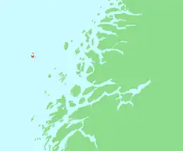 Sanna (sometimes Sanda) is an island and village area in the municipality of Træna in Nordland county, Norway. The 3-square-kilometre (1.2 sq mi) island is the largest island in Træna municipality. The island is located less than 1 kilometre (0.62 mi) west of the main island of Husøya. The island has five characteristic mountaintops, the highest is the 338-metre (1,109 ft) tall Trænstaven. The Traena Music Festival is held on this island each year.[1] The island has 3 residents (in 2018).
