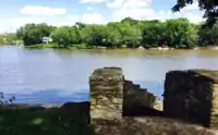 A set of stone stairs on the Eastern shore of Sans Souci Island in Waterloo, Iowa