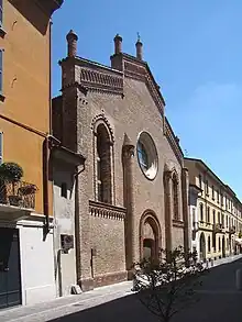 The Church of Sant'Agnese is a Gothic-style, Augustinian church in Lodi, Lombardy, a region of Italy. The church was expanded in 1393 by Bonifacio Bottigella when he became Bishop of Lodi. Bottigella oversaw the diocese until 1404. The church has been celebrated as representing a great moment in Lombard Gothic Architecture. The polygonal apse and two-tiered bell-tower are similar to that of the Lodi Cathedral.