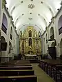 The Parish Church of Sant Josep de sa Talaia is one of the most popular churches to visit on the island. Many holidaymakers find their way here as part of official island tours. Unfortunately many of the churches original religious art works were damaged or destroyed in the violence of the Spanish Civil War of 1936. The wooden baroque style pulpit did survive and dates from between 1761 and 1763. The pulpit is decorated with a representation of the mysteries and was painted by Josep Sánchez Ocaria of Mallorca. Despite the damage to the churches artefacts the Patrimony Department and the Saint Joseph parish continue an ongoing program of restoration work to the works of art. Two such restored works are a statue of Saint Anne the mother of the Virgin Mary and a painting of the Ecce Homo by Sánchez de Ocaña. The church has a single Nave which has a barrel vaulted roof. The walls to the side of the nave have several smaller chapels.