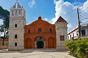 The Santa Bárbara church, seat of the Military Bishopric of the Dominican Republic. It was built on the same land where the workers extracted the stones for the construction of the Cathedral, the Alcázar, the Fortress, the various houses and colonial institutions.[2][3]
