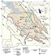 The Santa Clara valley aquifer is a groundwater aquifer located in the southern San Francisco Bay Area. The geology of the Santa Clara valley aquifer consists of a complex stratigraphy of permeable and impermeable units.[1] Management of aquifer resources is associated with the Santa Clara Valley Water District.
