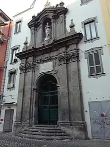 In 1326, a church and an adjacent hospital and monastery, titled Santa Maria del Borgo de' Vergini, were erected by residents of the Rione of Porta San Gennaro. Assigned to Padri Crucifero, the Cardinal Innico Caracciolo ceded the property to the Congregation of the Mission (Padri della Missione), after it became a parish church.[1] In 1788, the church was rebuilt in its elliptical interior on designs by Luigi Vanvitelli.