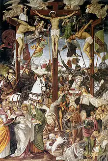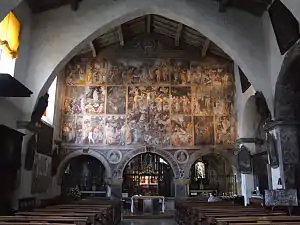 Similar decorative structures, with a partition wall entirely decorated with frescoes of the life of Jesus, were typical of the religious and artistic culture of the Friars Minor in Piedmont and Lombardy between the 15th and 16th centuries.[2]