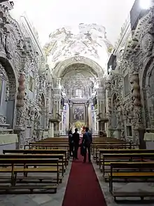In the semicircular apse are decorations by Giuseppe Patricolo. The main altarpiece is a depiction of the Madonna del Carmine (1642) by Pietro Novelli. The apse ceiling frescoes are attributed to Guglielmo Borremans.[2]