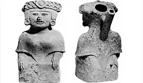 There are approximately 31 mounds at the site spread out over an area of about 54 hectares.[5] Settlements directly affiliated with the center have been located from the Angostura Canyon, clear down to the Guatemalan border as evidenced by dominant Santa Rosa pottery types found in the region.[6][7] Between the large center of Chiapa de Corzo further downstream, and the Guatemalan border, Santa Rosa was the largest Preclassic site along the Grijalva River.[8] The first permanent settlement of the area dates to the early Middle Preclassic Period from around 1000 BCE to 600 BCE and was continuously occupied until about 200 CE, at which point it began to experience a decline in population.[9][10]