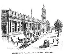 Archbishop´s palace and cathedral (with one tower), Santiago de Chile (1891), by Harper's Weekly.