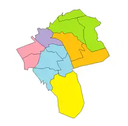 Since 1999, the town has been divided into 5 administrative barrios (in Spanish),[5] each neighborhood has got colonies or seccions: