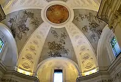 The facade is characterized by fine stucco statues of Angelo Viva, representing San Filippo Neri and San Gennaro.