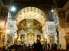 The Santo Bambino of Aracœli ("Holy Child of Aracœli"), sometimes known as the Bambino Gesù di Aracœli ("Child Jesus of Aracœli") is a 15th-century Roman Catholic devotional replicated wooden image enshrined in the titular Basilica of Santa Maria in Aracoeli, depicting the Child Jesus[1] swaddled in golden fabric, wearing a crown, and adorned with various gemstones and jewels donated by devotees.