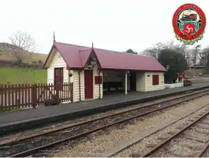 The railway station is the last on the line to still boast its original 1874 building; however, similar structures were in place at Port St Mary, replaced 1898; Ballasalla, replaced in 1985 and Colby demolished in 1980. The building is of simple style, being of timber construction with corrugated iron roofing, painted in a cream and red style unchanged since the late 1960s. It includes the station master's accommodation and porters' rooms as well as a passenger waiting shelter recessed from the running lines. In 1985 the railway station building was cosmetically restored at the expense of the now-defunct Isle of Man Railway Society and attention was given to the wooden slatting that form its exterior walls; a better form of wooden window shutters were also added at this time, the previous incarnations having been somewhat crude affairs. Upon completion of the project a large sign board denoting the improvements was erected over the porters' room window, but this was later removed when the group became defunct. In the intervening years no further remedial work was carried out and the condition of the building deteriorated considerably until it received further attention in 2002 as part of the redevelopment of the railway station when the entire infrastructure of the railway was overhauled. It has had a recent repaint in 2014. Hanging baskets and flowers added plus a bench on platform opposite the railway station building. The railway station is occasionally used for crossing trains during special events as 'Rush Hour' and the annual Santa Trains each December.