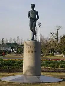 A statue in Okayama of Yuko Arimori, after whom the half marathon prize is named