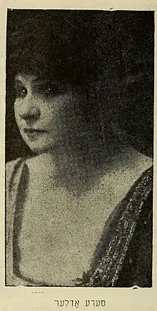 Sara Adler (née Levitskaya, some sources give Levitsky or Levitzky, changed to Lewis;[1] 26 May 1858 – 28 April 1953) was a Russian actress in Yiddish theater who made her career mainly in the United States. She was known as the "mother" or "duchess" of Yiddish theater.[2]