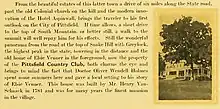 As evidence of a romantic relationship between Melville and Morewood, Shelden's book cites passages in Melville's surviving letters to her (available at the Berkshire Athenaeum), including his descriptions of Sarah as "Thou Lady of All Delight"; "the ever-excellent & beautiful Lady of Paradise"; "Mrs. Morewood the goddess"; and "most considerate of all the delicate roses that diffuse their blessed perfume among men is Mrs. Morewood."[11] Also cited are examples of their intimacy at parties, the gifts of books and bottles of Eau de Cologne that Morewood gave Melville, and their frequent outings in the countryside, including a summer night spent together in 1851 at the summit of Mount Greylock, the highest point in Massachusetts, where they were accompanied by a few friends, but not by their respective spouses."[11] After this overnight adventure Sarah wrote that, as a woman openly violating the social norms of the times, she left the mountain feeling as defiant as "Lot's wife, casting many a lingering look behind."[12] In the following weeks she and Melville grew closer as they explored the Berkshires together, strengthening the bond established by their shared experience on Greylock. In October 1851 she wrote, "Greylock is not forgotten here but often recalled in an amusing way—by Mr. Herman or myself—In some of our long walks we have taken a spyglass with us so as to bring nearer to us the Tower [where they had stayed overnight at the summit] and its associations."[13]