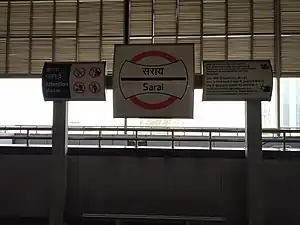 Sarai is an elevated station on the Violet Line of the Delhi Metro. It is located between Badarpur and NHPC Chowk station on the line 6 in Faridabad district of Haryana.[1]