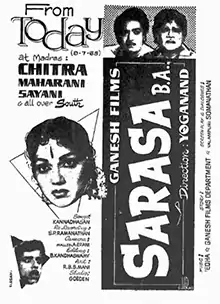 Sarasa B.A. is a 1965 Indian Tamil-language film directed by D. Yoganand and written by Valampuri Somanathan. The film stars P. Bhanumathi and K. Balaji, with M. R. Radha, Nagesh and M. R. R. Vasu in supporting roles. It was released on 9 July 1965.