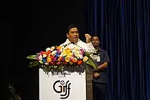 Sarbananda Sonowal (Assamese: সৰ্বানন্দ সোণোৱাল / IPA: xɔɹbanɔndɔ xʊnʊwal; born 31 October 1962)[3] is an Indian politician of Bharatiya Janata Party from Assam[4] who is serving as the current Cabinet Minister of Ports, Shipping and Waterways and Cabinet Minister of AYUSH, Government of India and the member of the Rajya Sabha representing Assam since 2021[5] and also a member of the Cabinet Committee on Political Affairs since 2021.[6] He is the 14th Chief Minister of Assam from 2016 to 2021 and the former of Assam Legislative Assembly from Majuli from 2016 until he resigned in 2021 and from Moran constituency from 2001 to 2004. Sonowal earlier served as the Assam state unit President of Bharatiya Janata Party (BJP) from 2012 to 2014 and again from 2015 to 2016.[7] He has also served as the Minister of Sports and Youth Affairs, Government of India, from 2014 to 2016 and the Minister of State for Entrepreneurship and Skill Development from 2014 to 2014 and the member of the Lok Sabha from Lakhimpur from 2014 to 2016 and from Dibrugarh from 2004 to 2009. He was also the member of the Asom Gana Parishad from 2001 to 2011.[8][9][10]