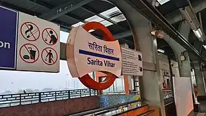 Sarita Vihar is a Delhi Metro station in Delhi. It is located between Jasola Apollo and Mohan Estate stations on the Violet Line.