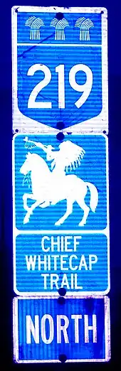 Highway 219 starts at Highway 44 near Danielson Provincial Park[2] and Cutbank and travels north, passing through the hamlet of Glenside, intersecting Highway 15 east of the town of Outlook, before passing through Whitecap Dakota First Nation. North of the First Nation, the highway passes through bedroom communities of Grasswood and Furdale before entering Saskatoon as Lorne Avenue. It intersects Circle Drive before ending at Idylwyld Drive.[3]