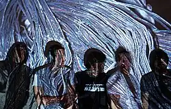 In 1998, inspired by the Heaven's Gate religious cult suicides in 1997, the "Happy to Follow" single was released.