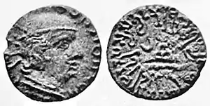 - ↑ Rapson, E. J. (Edward James) (1908). Catalogue of the coins of the Andhra dynasty, the Western Ksatrapas, the Traikutaka dynasty, and the "Bodhi" dynasty. London : Printed by order of the Trustees. p. 125.