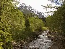 The Sauk River is a tributary of the Skagit River, approximately 45 miles (72 km) long, in northwestern Washington in the United States. It drains an area of the high Cascade Range in the watershed of Puget Sound north of Seattle. The river is a popular destination for fly fishing. It is a National Wild and Scenic River.[4]