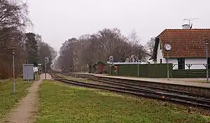 Saunte station is a railway station serving the village of Saunte in North Zealand, Denmark.