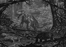 Saurosuchus (meaning "lizard crocodile") is an extinct genus of large loricatan pseudosuchian archosaurs that lived in South America during the Late Triassic period. It was a heavy, ground-dwelling, quadrupedal carnivore, likely being the apex predator in the Ischigualasto Formation.[1]