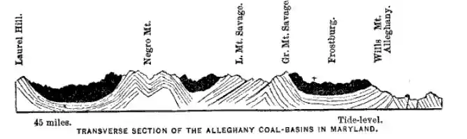 Savage Mountain is an anticline extending from Bedford County, Pennsylvania southwest into Western Maryland.[3] It is the western side of the Ridge-and-Valley Appalachians, and the eastern portion of the ridge forms the border of Garrett and Allegany Counties of Maryland.