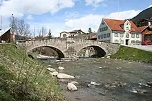 as well as stately citizens' homes, such as the Peterelli House on the main street, and the Amilcar House near the parish church, with its south-German-influenced half-timbered style. The Gelgia bridge in the community of Sot Curt is from 1682. A regional museum was established in a 16th-century farmhouse in 1982.