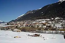 Savognin (in local Romansh dialect Suagnign;[1] Italian: Savognino; German: Schweiningen, official name until 1890) is a village and former municipality in the Sursés in the district of Albula in the canton of Grisons in Switzerland. On 1 January 2016 the former municipalities of Bivio, Cunter, Marmorera, Mulegns, Riom-Parsonz, Salouf, Savognin, Sur and Tinizong-Rona merged to form the new municipality of Surses.[2]