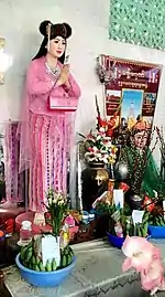 Some people believe Sao Mon Hla, who died at her home near Hsipaw, along with her brother, became an guardian Nat (spirit) who protect the Pagan-style pagoda to present day. There is a Nat shrine near the Shwesayan Pagoda, which has a statue of Sao Mon Hla and her brother. Some people believe it is a shrine for the spirits and that if they make offerings, the spirits will bless them. Paying respect to the spirits of Sao Mon Hla and her brother at Shwe Sar Yan Pagoda has drawn more visitors than other pagoda festivals.