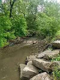 Construction of Ottawa's Southeast Transitway in the early 1990s resulted in the altering of the creek within a three kilometre stretch where the Transitway runs parallel to the creek.[8] The area was chosen by Regional Municipality of Ottawa–Carleton council as a rapid-transit site in 1978, and was opposed at the time by environmentalists who feared the creek would be filled in, and the ecological integrity of the creek would be destroyed.[9]