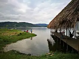 Lake Sauce[1][2][3] also locally known as Laguna Azul (Spanish for "blue lake"), is a lake in Peru.[1][2] It is located in the region of San Martin, 45 km from the city of Tarapoto,[2] at 700 m of elevation and has an area of 4.3 km2.[1] The lake is surrounded by hotels,[2][4] camping facilities,[4] forest remnants and agricultural land.[1] The lake is a good spot for swimming and fishing.[2][4]