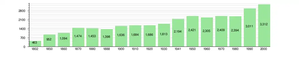 Saxon has a population (as of December 2020) of 6,278.[6] As of 2008, 28.8% of the population are resident foreign nationals.[7] Over the last 10 years (2000–2010 ) the population has changed at a rate of 29.8%. It has changed at a rate of 33.9% due to migration and at a rate of 1.3% due to births and deaths.[4]