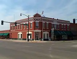 The Sayre Downtown Historic District is a commercial historic district located in downtown Sayre, Oklahoma. The district comprises a three-block area of Main and 4th Streets; it includes 39 buildings, of which 24 are contributing buildings. The oldest buildings in the district date from between 1903 and 1909, when a building boom replaced Sayre's frame downtown buildings with brick Commercial style structures. By the 1920s, the downtown area had reached its current size, and most of the buildings in the district had been built. In the 1920s, U.S. Route 66 was routed through the district, increasing traffic for local businesses. Sayre's Classical Revival post office, a contributing property, was constructed in 1938; the post office includes a Works Progress Administration mural painted in 1940. The downtown remained prosperous until the 1950s, when population decline and the bypassing of Route 66 led to a decrease in commercial activity.[2]