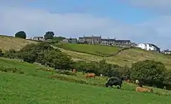 Scapegoat Hill is a small village 5 miles (8 km) west of Huddersfield, West Yorkshire, England. It is near to the villages of Slaithwaite and Golcar. The village together with nearby Bolster Moor has a population of 1,246.