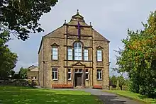 The village grew up around the woollen trade, and, in spite of having no mill, continued to grow in size throughout the nineteenth century. In fact, handloom weavers are recorded here as late as 1935.[2] Throughout the nineteenth century and well into the twentieth, the village was a very strong centre of baptism [3] opening a church as a daughter of the Pole Moor Church 1871 and moving to its present building in 1900.