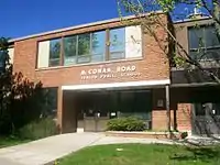 On January 1, 1954, The Collegiate and Township Boards merged into the new Scarborough Board of Education. Dr. King, the principal of Scarborough C.I. became the first Director of Education.[3] As the architecture of these new schools was simple, functional and unpretentious, the earlier models were sometimes subject to criticism as bearing too close a resemblance to long, low factory buildings. However, as school succeeded school, their style and appearance was progressively improved. In some of the more recent buildings marks of beauty and distinction have begun to emerge. Indeed, to the eyes of older Scarborough residents accustomed to the bare little brick schoolhouses of the rural period, the latest modern school buildings of gleaming glass, steel, and brick are most impressive temples of learning. To attractive well-lighted classrooms have been added new features: beautiful kindergarten classrooms with radiant heating in the floors, libraries, manual training and household science rooms, rooms for nurses and teachers, spacious dual purpose gymnasiums and auditoriums with stages, and modern equipment such as motion picture projectors, tape recorders and even television sets. Many children are also transported daily to school in school buses; which ends the era of the day of the long walk to school in wind and rain, snow, mud and dust conditions.[3]