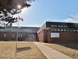 With overcrowding at Scarborough Collegiate Institute and Agincourt High School, they were incapable of coping with the crowds of students seeking secondary education.[3] This led to the construction of its third high school Winston Churchill Collegiate Institute, named after Winston Churchill, on Kennedy and Lawrence in the Dorset Park area on December 4, 1953, with the first 657 pupils admitted on September 7, 1954.[3] One year later, West Hill Collegiate Institute on Morningside Avenue in West Hill opened on September 6, 1955, to 376 students.[3] That year it was also necessary to enlarge Agincourt Collegiate Institute by the addition of seventeen rooms and a gymnasium.
