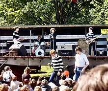 The original Scars lineup performing live at the Meadows Festival in 1979, featuring original drummer Calumn Mackay