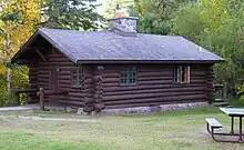 The park includes two historic districts that are listed on the National Register of Historic Places. The Scenic State Park CCC/Rustic Style Service Yard is located on the western shore of Sandwick Lake and it is composed of four buildings on a 2-acre (0.81 ha) site.[5] They include the Equipment Building (1934), Ice and Wood House (1934), Custodian's Cabin (1935), and the Tool & Equipment Building (1935). The Scenic State Park CCC/WPA/Rustic Style Historic Resources district is composed of four buildings and two structures on 16 acres (6.5 ha) on the western shore of Coon Lake.[4] They include the Shelter Pavilion (1934-1935), Comfort Station (1934-1935), Naturalist's Cabin (1935), Shelter & Latrine (1935), Water Tower (1935), and the Stone Steps (1935). The ten buildings and structures in the park were constructed by the Civilian Conservation Corps (CCC) in the Rustic style. They were designed by G. Iverson, Edward W. Barber, and the National Park Service (NPS). This development started in 1933 and it was the first CCC state park camp to begin operating within Minnesota.[5] The buildings, of log construction, received considerable acclaim from the NPS. The landscape design was also prepared by the National Park Service and is one of the most thorough and extensive designs executed by their landscape architects.