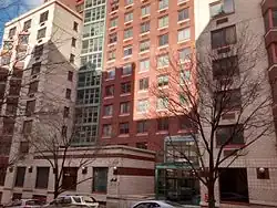 It is located half a block from the university's main campus, near the intersection of Broadway and 115th Street in the Morningside Heights neighborhood of the borough of Manhattan in New York City. Upon its completion in 1988, at a cost of $18 million, Schapiro allowed the university to house all its undergraduates in dormitories for the first time, a vision originally pushed for by then-Dean of Columbia College Robert Pollack.[2] This policy is now promised to all current and incoming undergraduate students at Columbia and Barnard. The 17-story building is one of the newer residences at Columbia and contains 245 single and 85 double residences, music practice rooms, floor lounges, and two study spaces. The "Penthouse," the 17th floor, has a quiet study space for students and no residential rooms. The building was designed by the architectural firm Gruzen Samton Steinglass.[3]