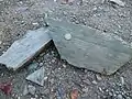 Due to their good splitting properties, the broken blocks were mostly used as pavement slabs or low precision cut construction methods such as dry stone walls. The nearby Laufenburg contains small portions of the broken material in its masonry from 1217.[6] Even in the Middle Ages, therefore, the slabs were quarried using simple tools such as pickaxes and crowbars, and prepared for use in a rudimentary way with chisels, fistfuls and lumps. Towards the end of the 19th century, the stone in particular was worked somewhat finer and shaped into elongated cuboids for buildings and used in irregular masonry. In the middle of the 20th century, large, mighty slabs were also processed as work stones on gables and the like. In later times, the natural stone was mainly used as clinker and was therefore sold treated with a stone saw with small thicknesses. From this time onwards, solid stones were often used as gravestones, but were not easy for stonemasons to work with due to the stone's properties.[6]