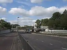 The station is built on the bridge over the Nieuwe Damlaan, one of the principal streets northwest of the city centre of Schiedam.