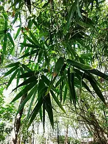 Schizostachyum is a tall or shrub-like tropical genus of bamboo.[2][3] They are natives mostly of tropical Asia and Papuasia, with a few species in Madagascar and on certain islands in the Pacific.[1][4] A few have become naturalized in other tropical regions.[5]