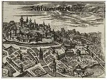 During the rule of King Ottokar II of Bohemia, the settlement became a royal town. This lasted until the 15th century, when the Schlick family bought the town. In 1625, the town was acquired by Julius Henry, Duke of Saxe-Lauenburg. He decided to make Ostrov the residence of his house. He had rebuilt Ostrov Castle and extended, and founded a Piarist monastery with a Latin school.[2]